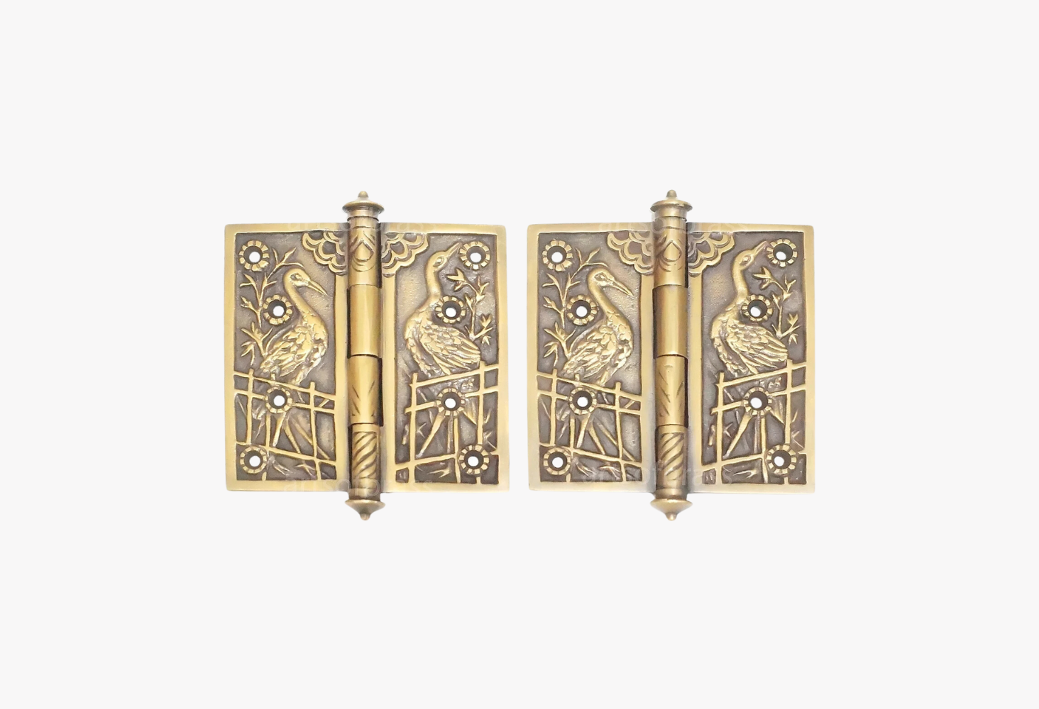 Engraved Vintage Brass Door Hinges