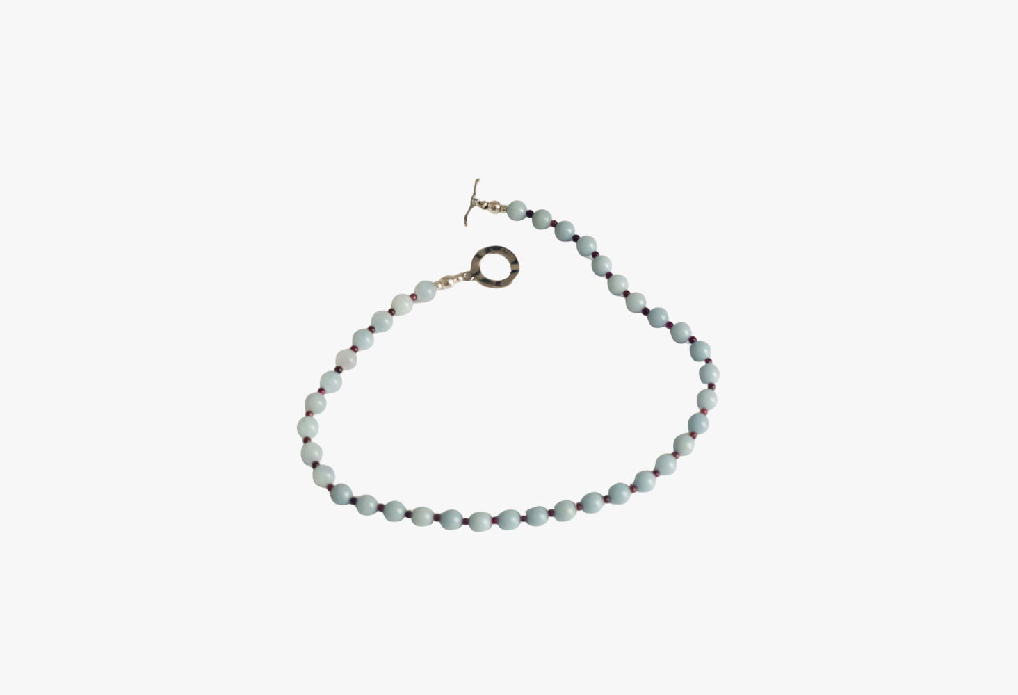A pretty angelite & red garnet necklace for a song. $78