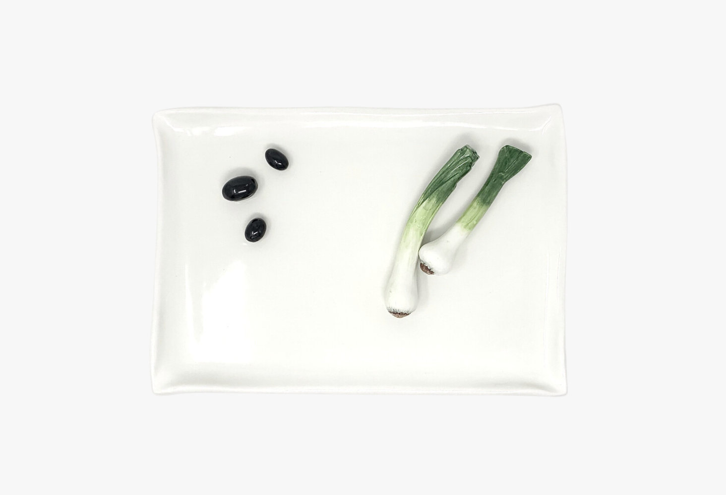 A lovely serving tray with a few scallions and olives, made in Italy. $145